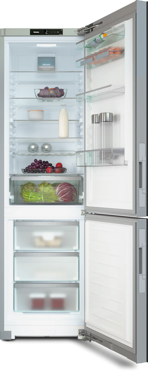 • Технологии: LED-освещение, Miele@home, DailyFresh, ComfortClean, DynaCool, NoFrost, DuplexCool, XL-глубина, VarioRoom, SoftClose, SelfClose, EasyOpen, SensorTouch, SuperFrost, FlexiBoard
