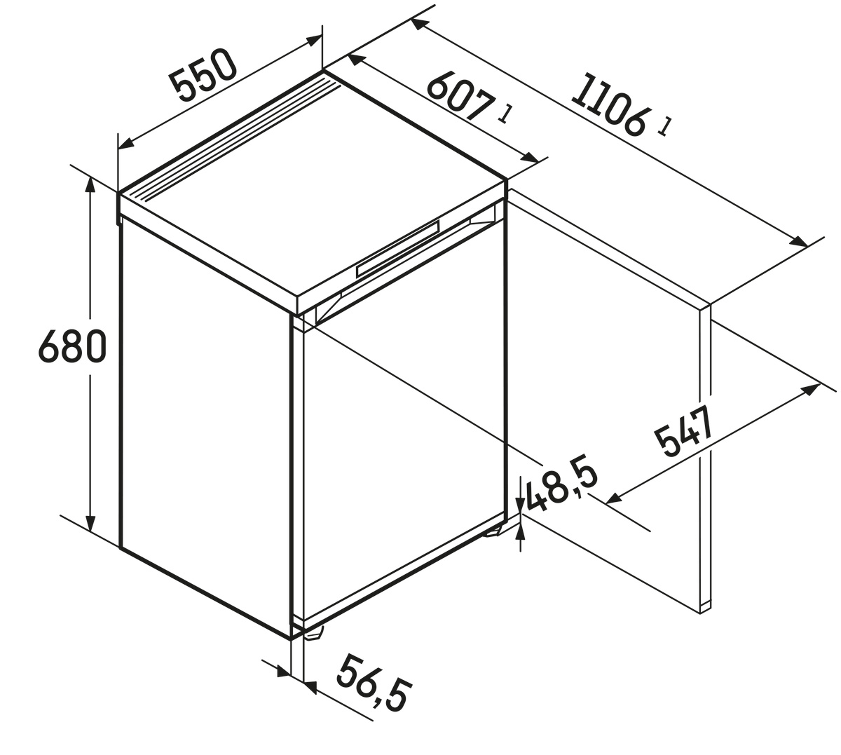 Pure, 68x55x60.7, объем 75 л, уровень шума 37 дБ, светодиодная подсветка морозильной камеры