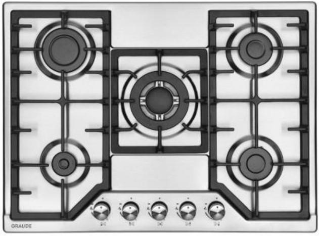 Компактная газовая панель шириной 70 см с 5 конфорками, включая WOK. Поворотные переключатели обеспечивают удобное управление. Система «Газ контроль» и автоматический электроподжиг гарантируют безопасность.