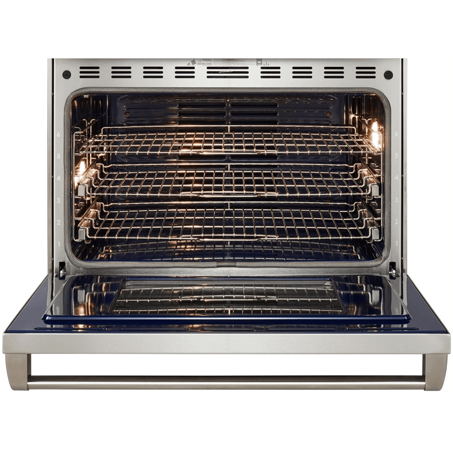 Вторая важная особенность духового шкафа — режим Gourmet. Это 50 автоматических программ для получения гарантированно замечательных результатов без вашего участия в процессе готовки. Плюс десять основных классических режимов (выпекания, жарки, тушения, конвекции, выпекание с конвекцией, жарение с конвекцией, тушение с конвекцией, приготовление на выпечном камне, расстойки теста, дегидрации). Gourmet от Wolf — это совместная работа бренд-шефов Wolf и ведущих инженеров компании, воплотивших профессиональные кулинарные рецепты в программном обеспечении. Какое бы блюдо вы не доверили  Wolf ICBIR36550, великолепный результат будет гарантирован.