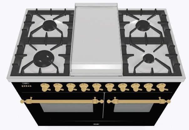 • Тип конфорок: 4 газовые конфорки, Dual конфорка, жарочная поверхность Fry Top