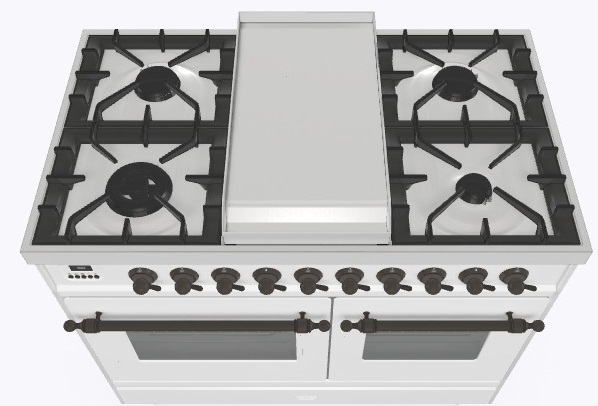• Тип конфорок: 4 газовые конфорки, WOK конфорка, жарочная поверхность Fry Top