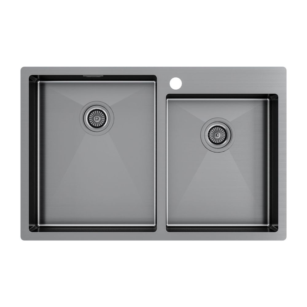 Габариты мойки составляют 780х510мм, две вместительные чаши обеспечивают максимальное пространство и удобство для мытья посуды. Возможен монтаж вровень со столешницей или врезной монтаж мойки.