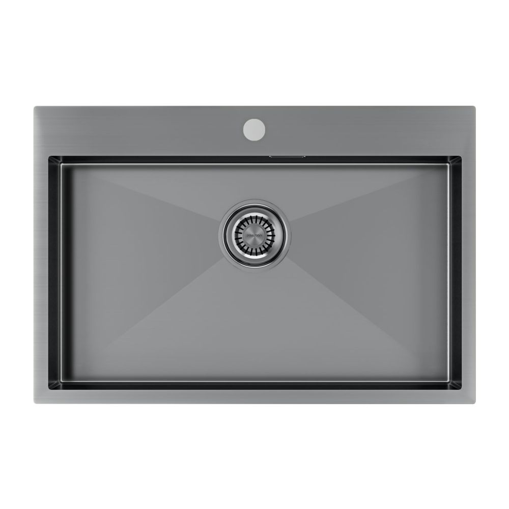 PVD покрытие в цветах воронёная сталь / брашированное золото (GM / BG) на внешней поверхности мойки для кухни VELTEN 75 – это особый метод напыления, путём прямой конденсации пара наносимого материала, который позволяет поверхности мойки быть особенно устойчивой к появлению царапин и истиранию. Такое покрытие является не только декоративным, но и защитным слоем, оно плотно и равномерно прилегает к основе, не содержит микротрещин.