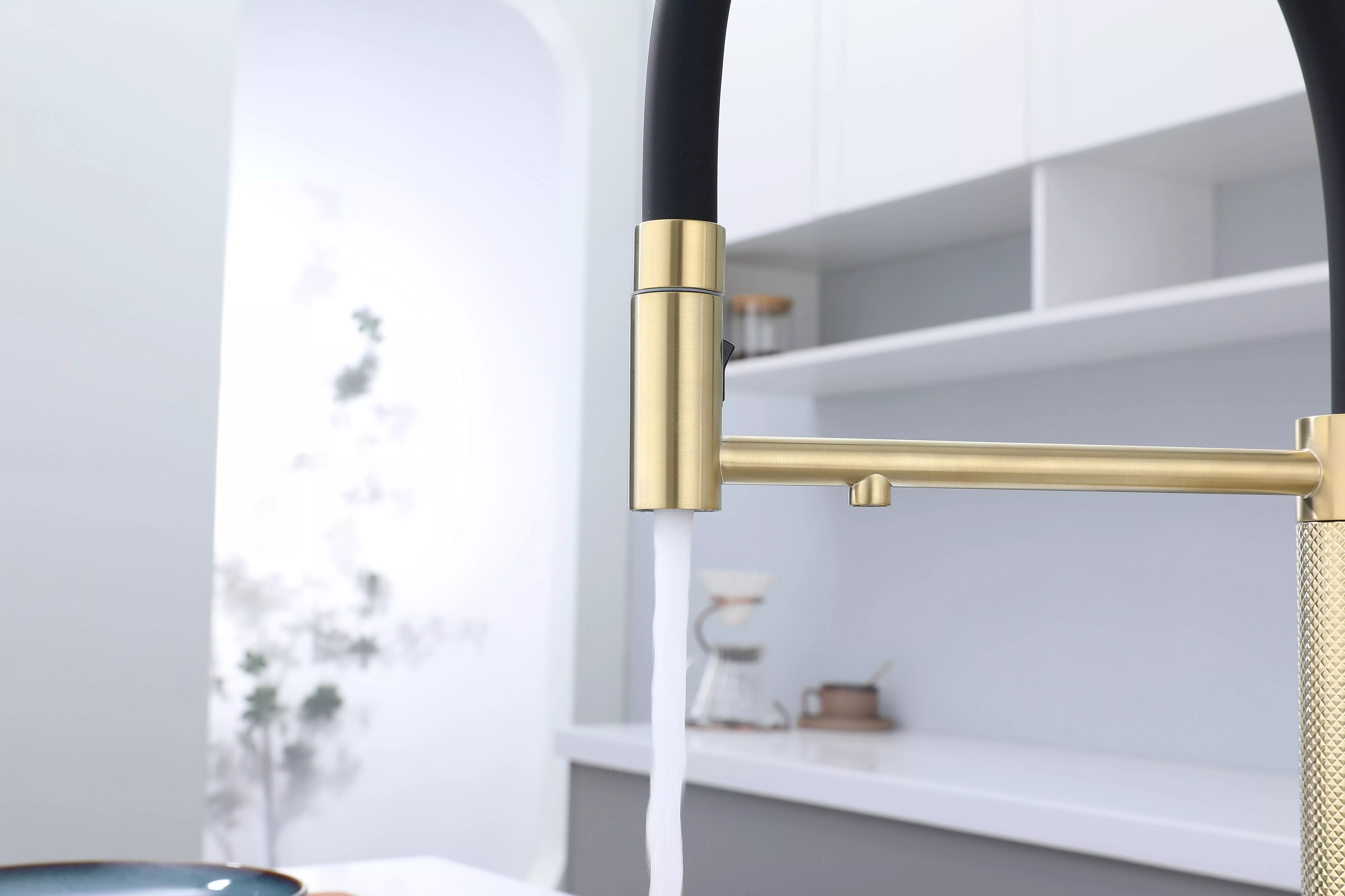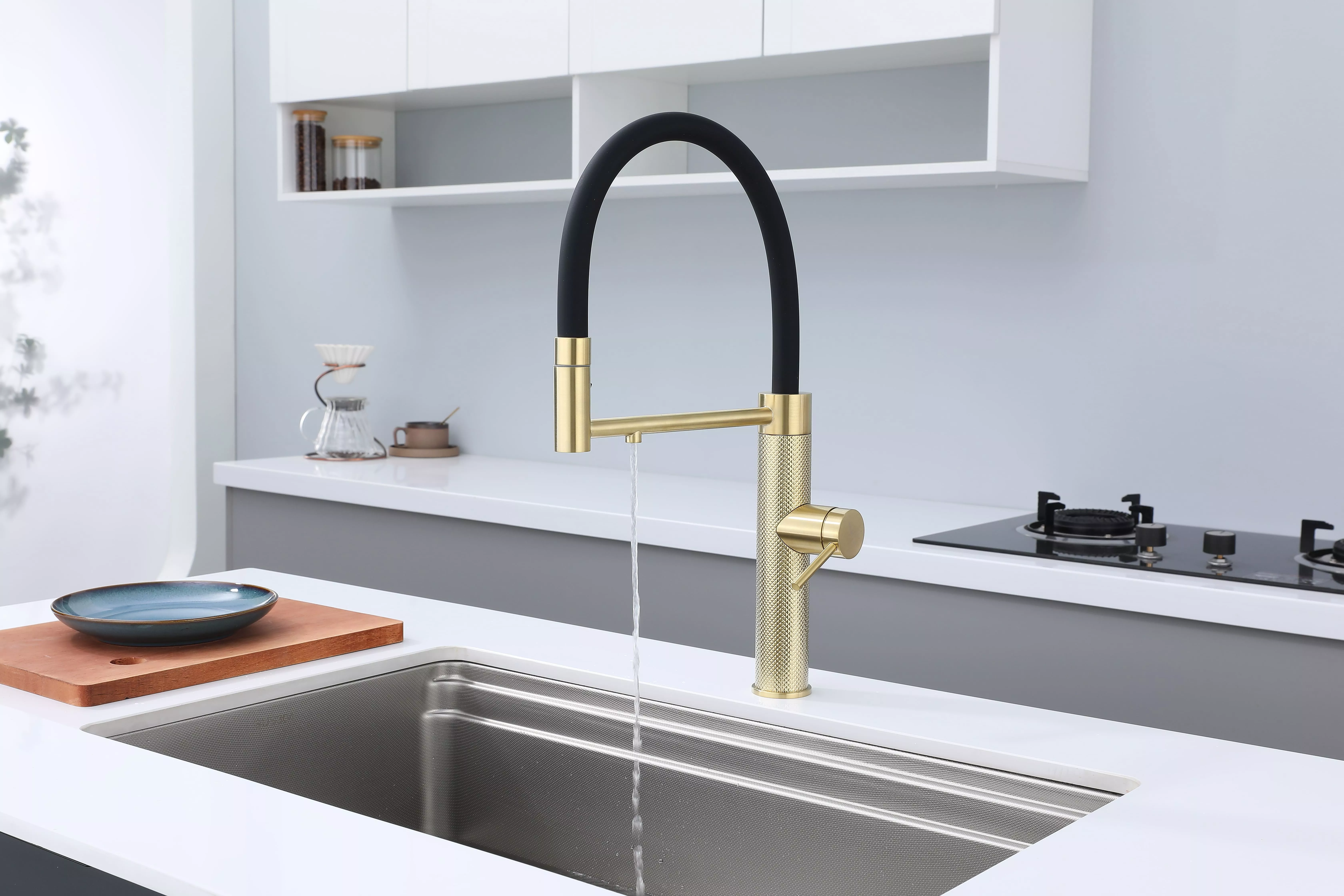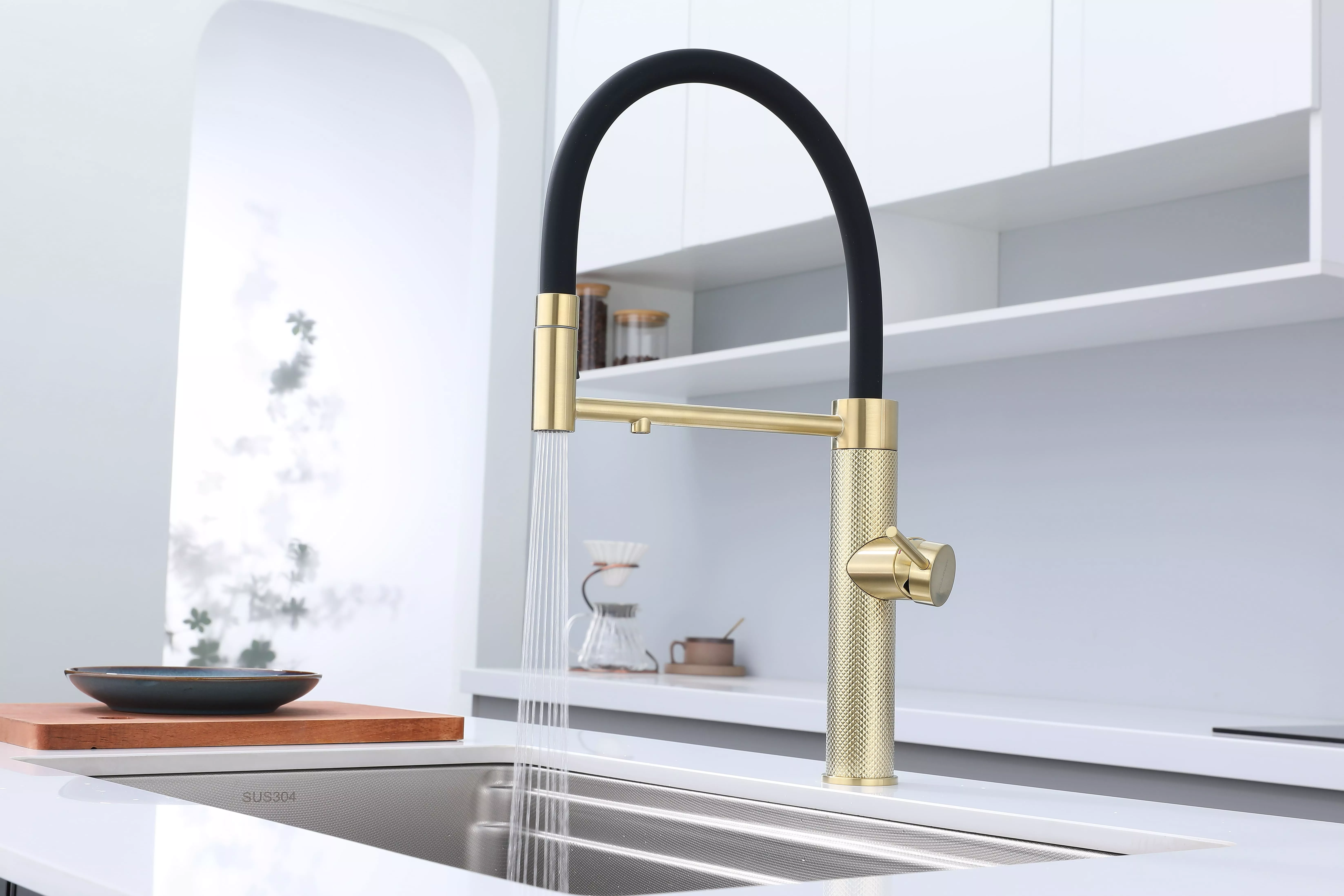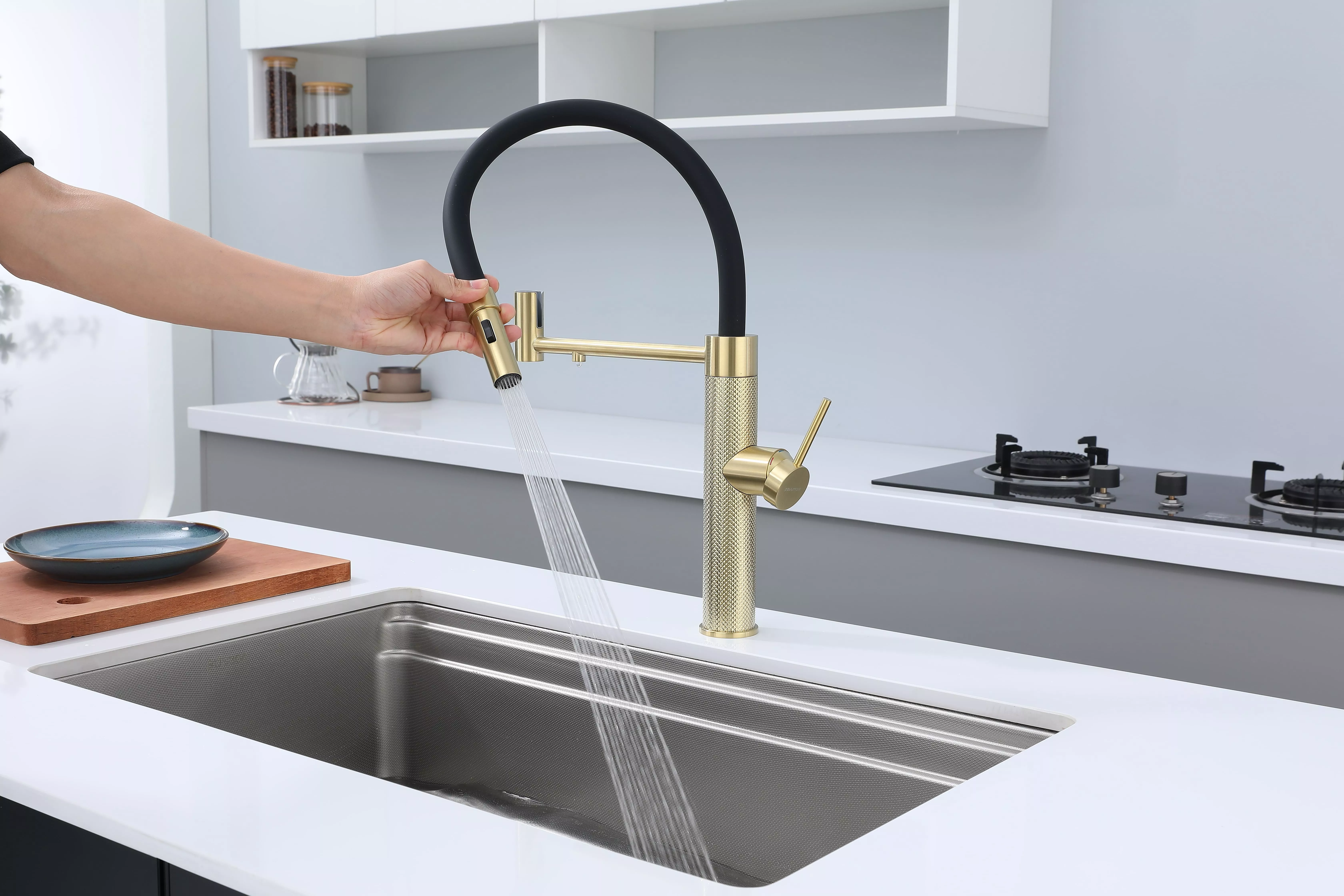 Смеситель для кухни GANYMEDE DIAMOND сочетает в себе стильный дизайн и передовые технологии. Благодаря функции подключения фильтра питьевой воды и специальной технологии Trinkwasser® водопроводная и очищенная вода никогда не смешиваются, а управление ими осуществляется единым удобным рычагом 2в1. Гибкий силиконовый излив обеспечивает широкий диапазон движений и надежно фиксируется элементом корпуса в форме кольца. На конце излива расположена кнопка для переключения между режимами струи и душа, что идеально подходит для мытья посуды и продуктов. Декоративные насечки на корпусе создают игру света и делают модель эксклюзивной. Излив поворачивается на 360°, а расширенная гарантия производителя составляет 8 лет.