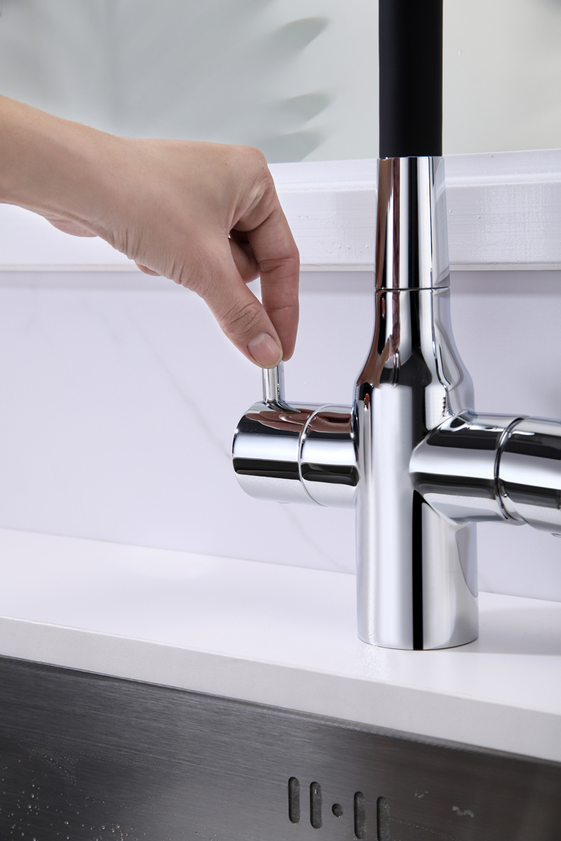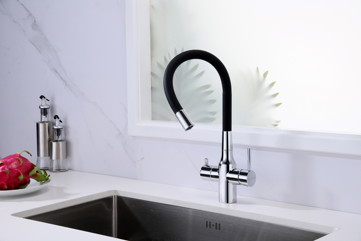 Смеситель для кухни SALIX c возможностью подключения системы фильтрации питьевой воды изготовлен из высококачественной латуни, которая отвечает высочайшим европейским стандартам качества, не содержит свинца, не разрушается со временем и безопасна для здоровья.