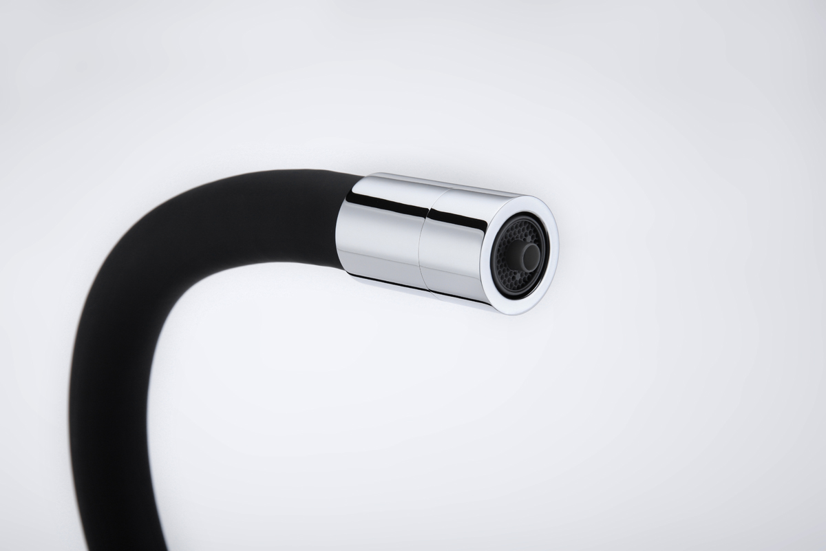 Высокий гибкий излив из силикона, вращающийся на 360 градусов, обеспечивает легкое мытьё и наполнение высокой посуды и ваз. Крепление излива с помощью магнитного держателя обеспечивает надёжную фиксацию.